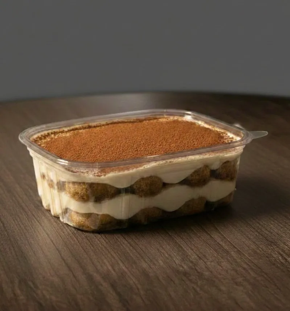 Galleta tipo soleta italiana cubierta de espresso, esponjosa crema de queso mascarpone, cocoa. Individual.