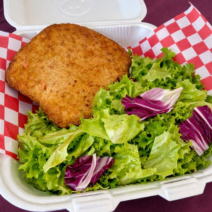 MILANESA DE POLLO CON ENSALADA