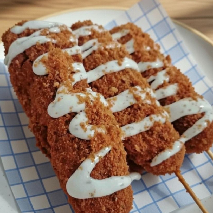 ORDEN DE 3 BANDERILLAS COREANAS CRUJIENTES POR FUERA SUAVE AL INTERIOR, NO INCLUYE ADEREZOS, FAVOR DE ESCOGERLOS A PARTE.