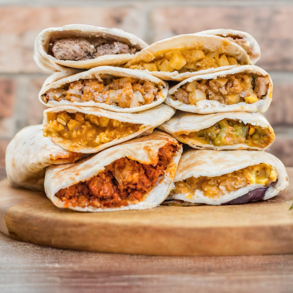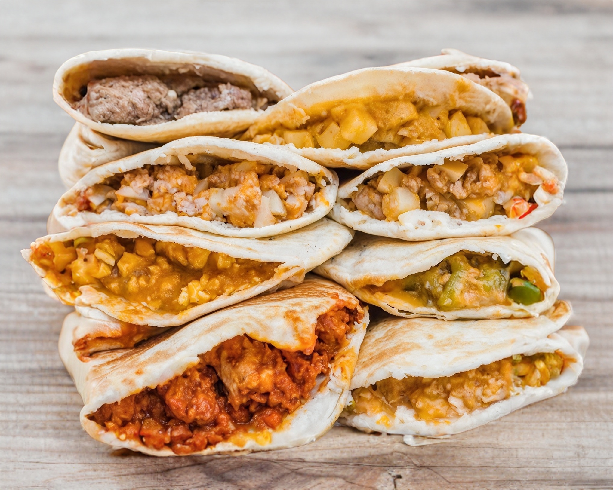 Tacos dorados de papa, queso, pollo y frijoles, acompañados de ensalada y arroz. Porción de 4 piezas.