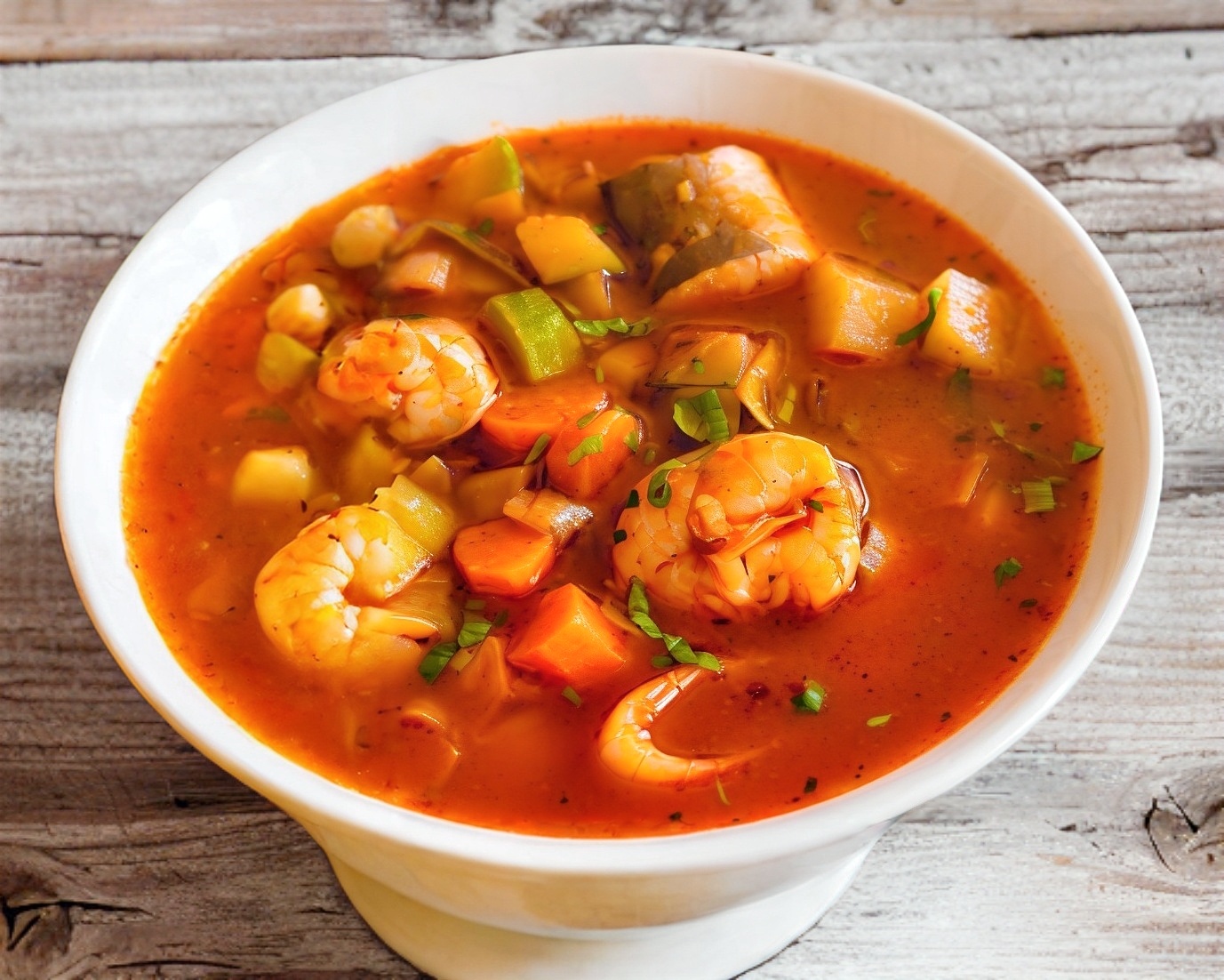 Caldo de pescado con verduras. Acompañado de porción de arroz. Porción de medio litro