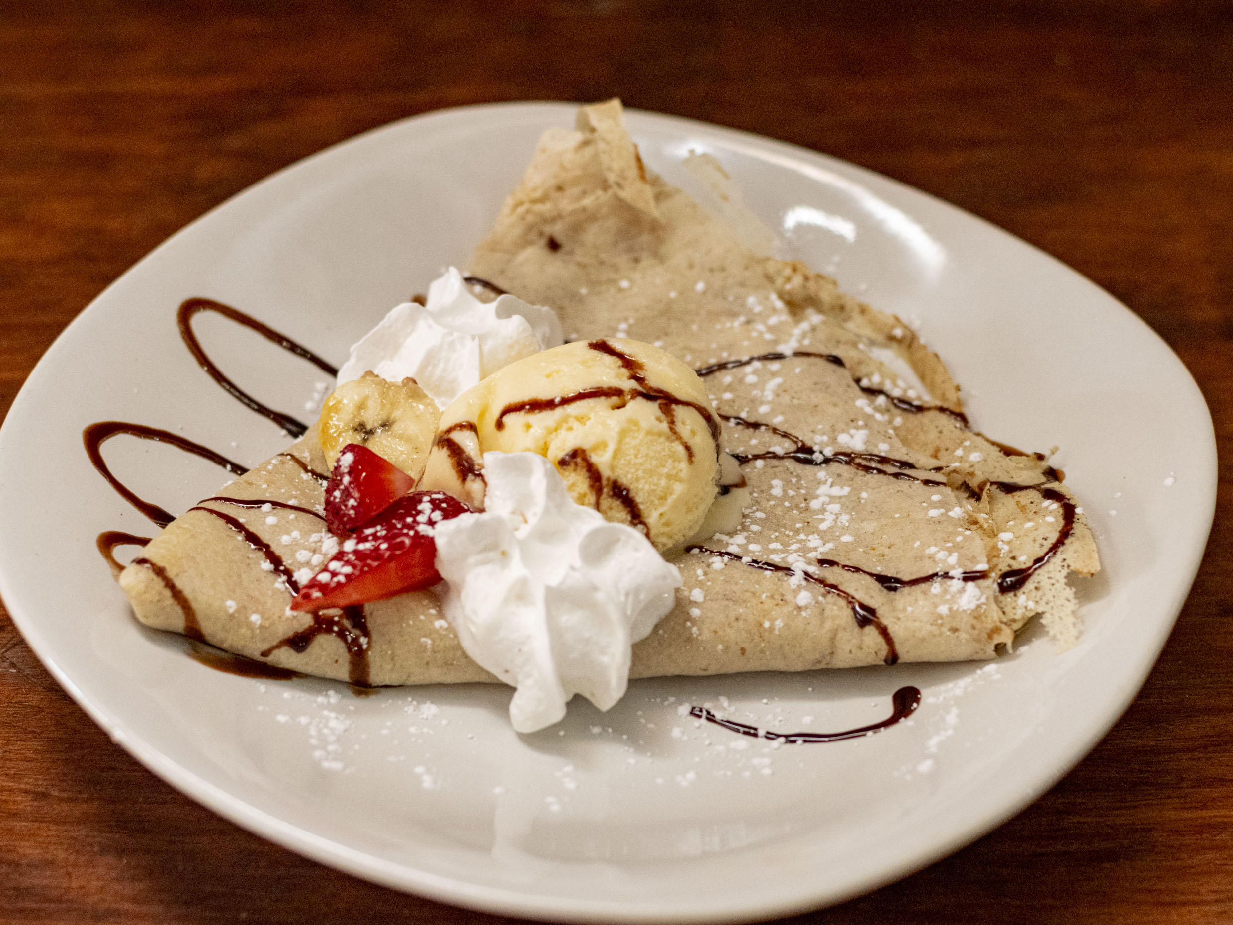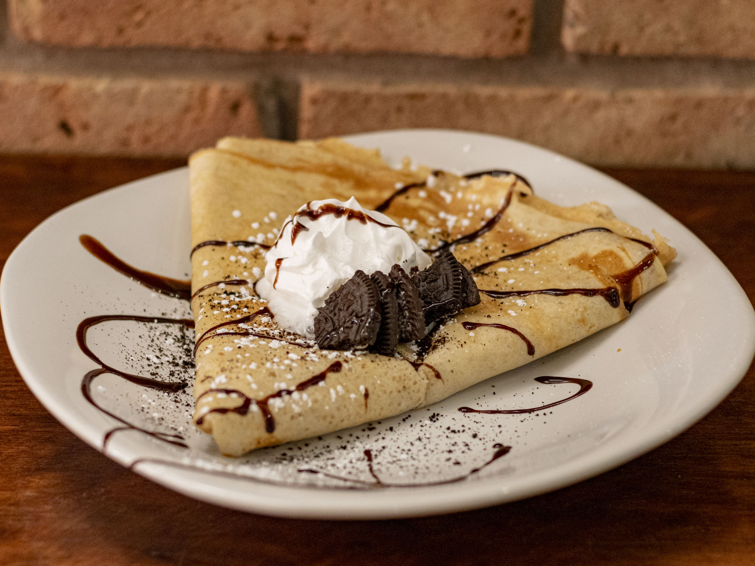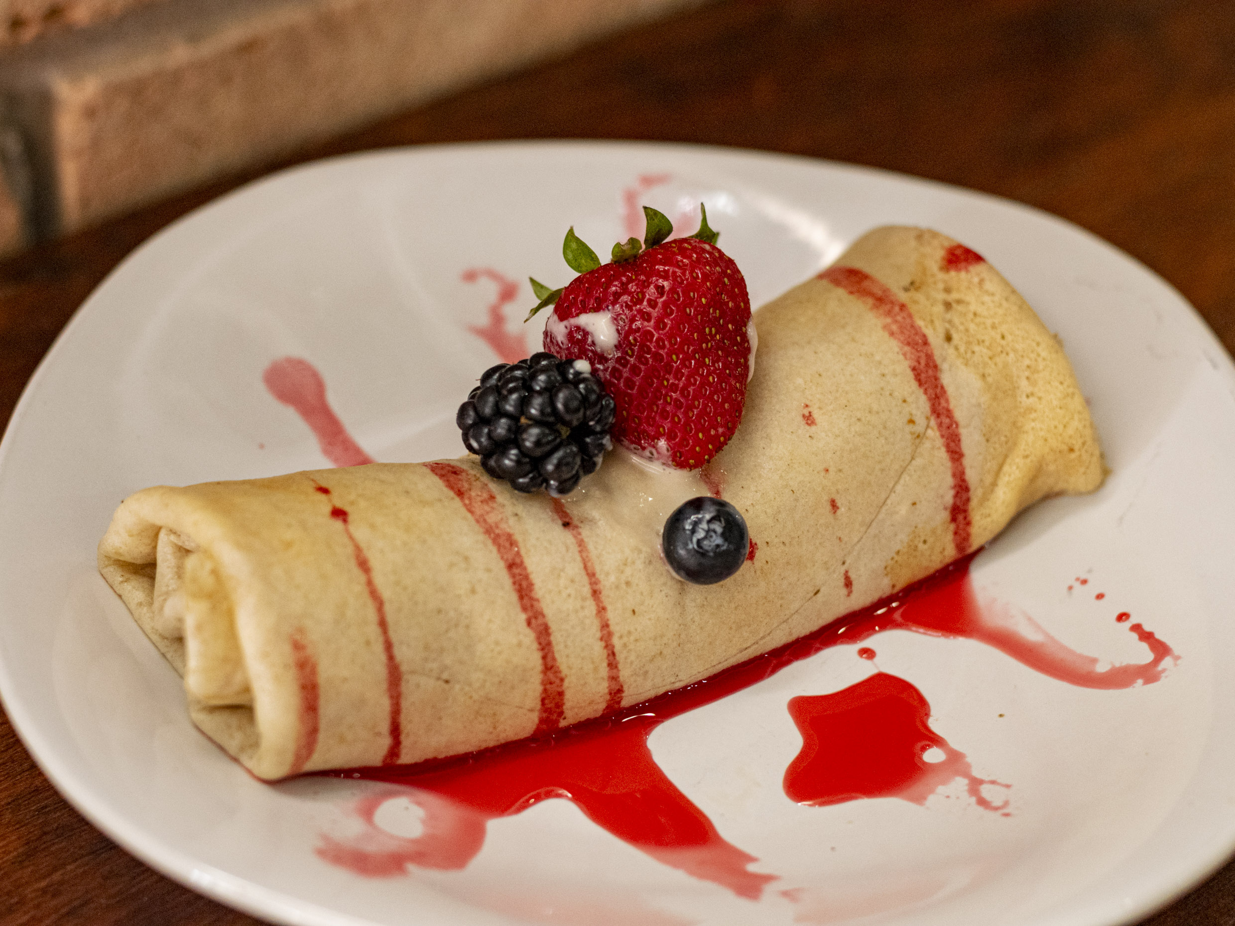 Crepa rellena de pollo con rajas cremosas y queso manchego gratinado