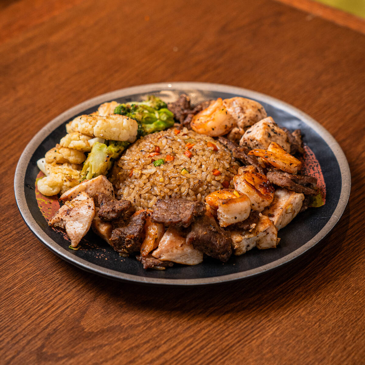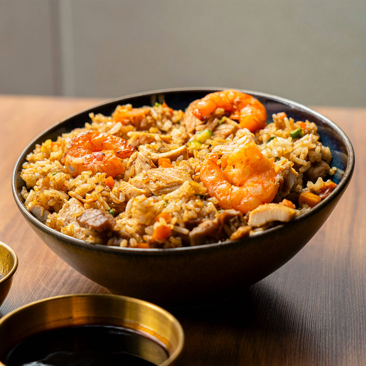 ARROZ FRITO CON VERDURAS, ZANAHORIA, CALABAZA, CEBOLLA Y CAMARON