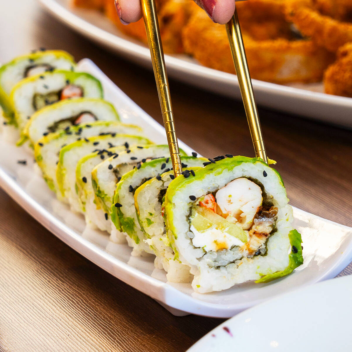 CAMARON, PHILADELPHIA, AGUACATE, PEPINO, POR FUERA MASAGO O AJONJOLI