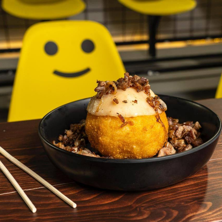 POR DENTRO AGUACATE, PASTOR, POR FUERA GRATINADA CON TOPING DE PASTOR Y CEBOLLA FRITA