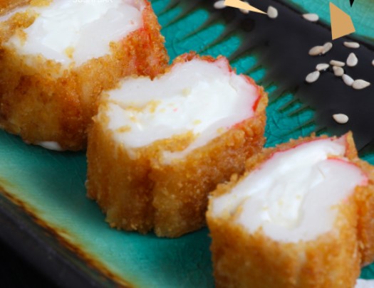 2 tiras de surimi Relleno de Queso Philadelphia Empanizado.