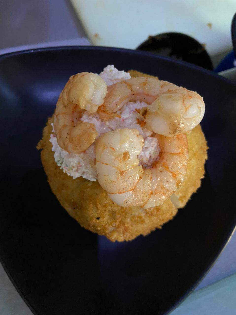 Camarón, philadelphia, plátano, empanizado con panko.