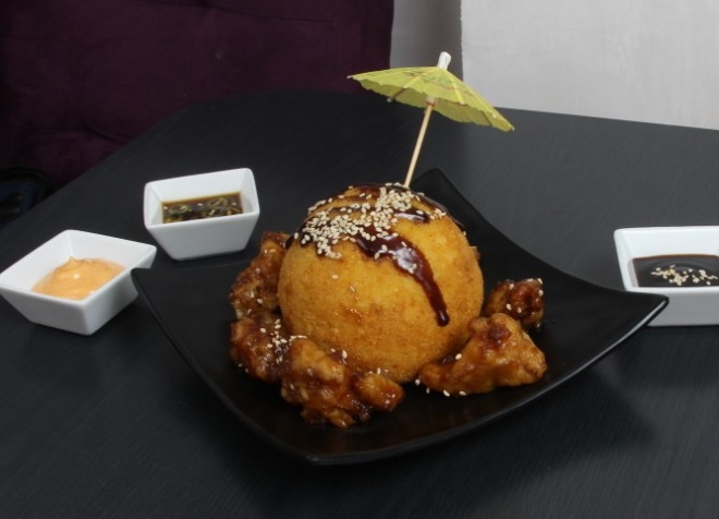 Bola de Arroz, Por Dentro Philadelphia, Aguacate, Tampico, Camarón, Empanizada.