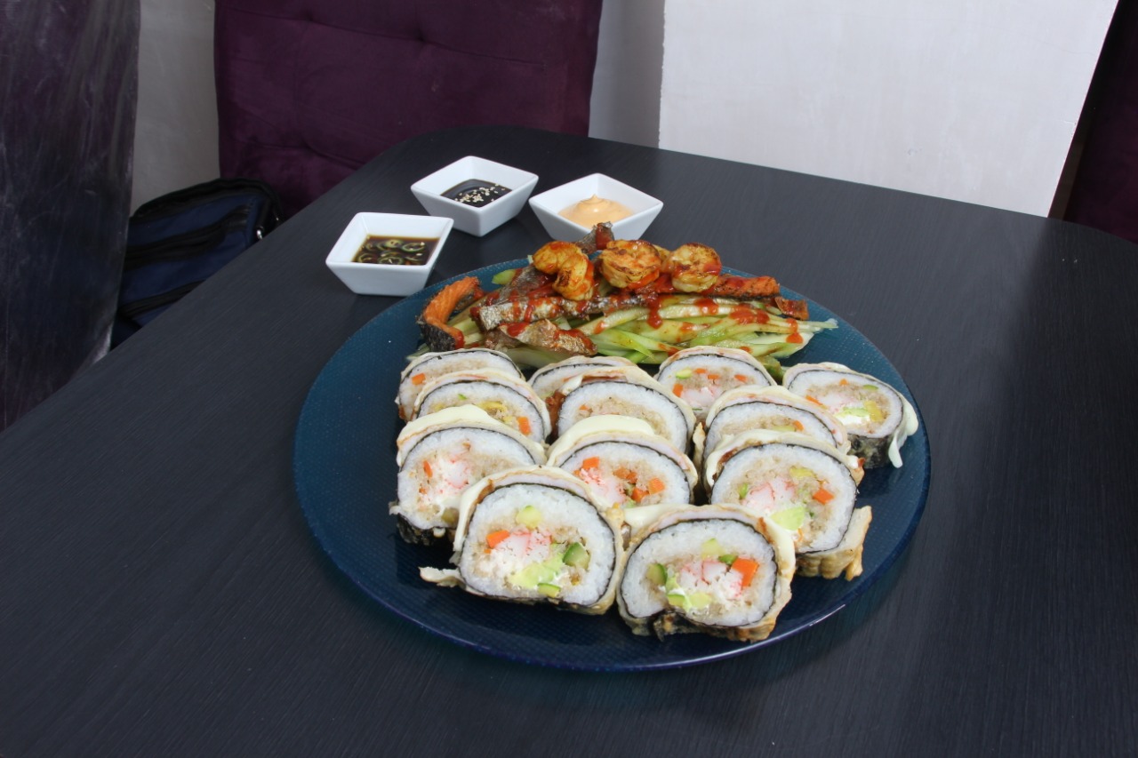 Incluye 3 Rolloa , Base Queso Crema y Aguacate, 100g Edamames,100g Aros de Cebolla,100g papa gajo,100g papa recta,200g bonneles,200g alitas,(Bonneles y Alitas naturales, se envian salsas aparte)