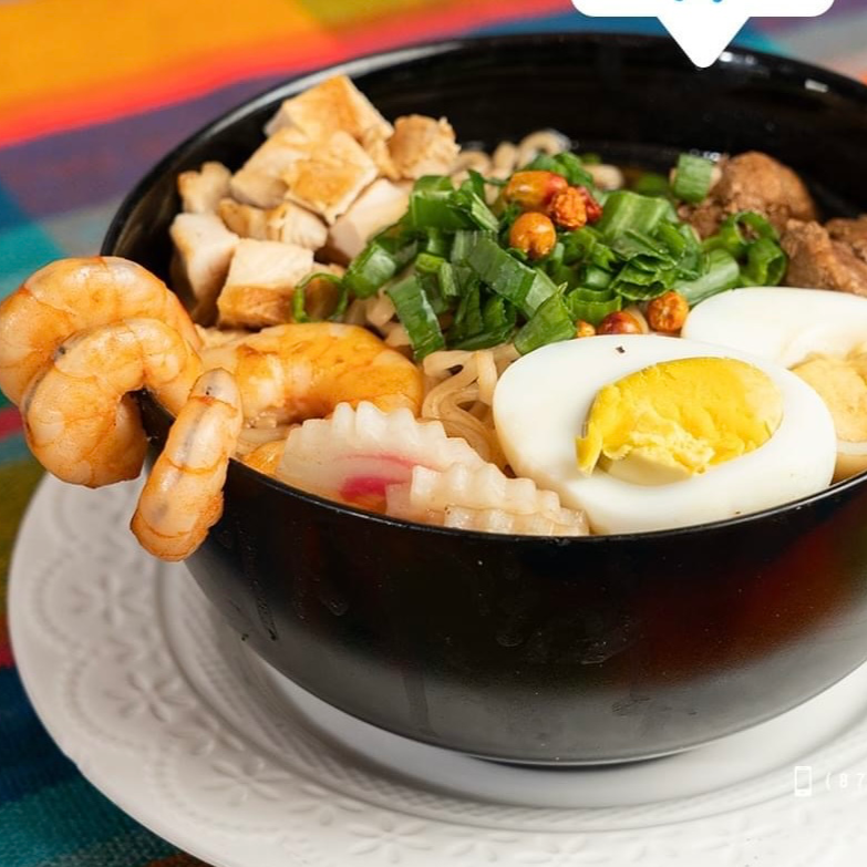 Pasta,costilla,pollo,naruto,huevo,camaron,cebollin.