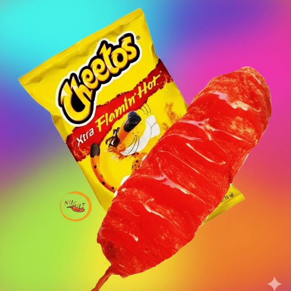 banderilla coreana rellena de queso empanizada de chetos flamin hot