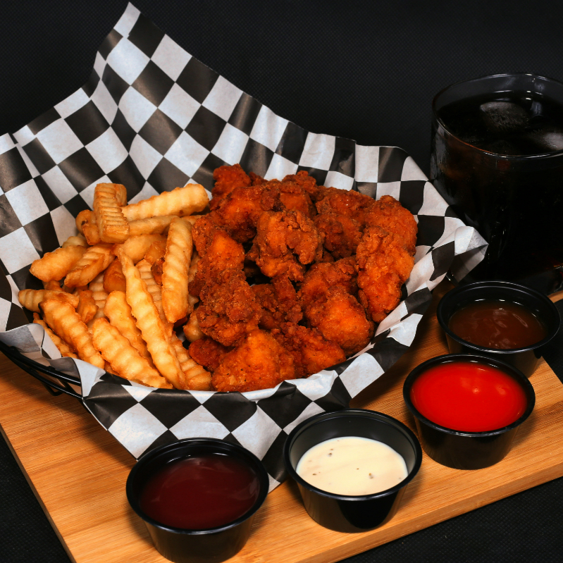 200g boneless + porción de papas fritas. Un Refresco de 400ml ( Ranch y Catsup incluidas)