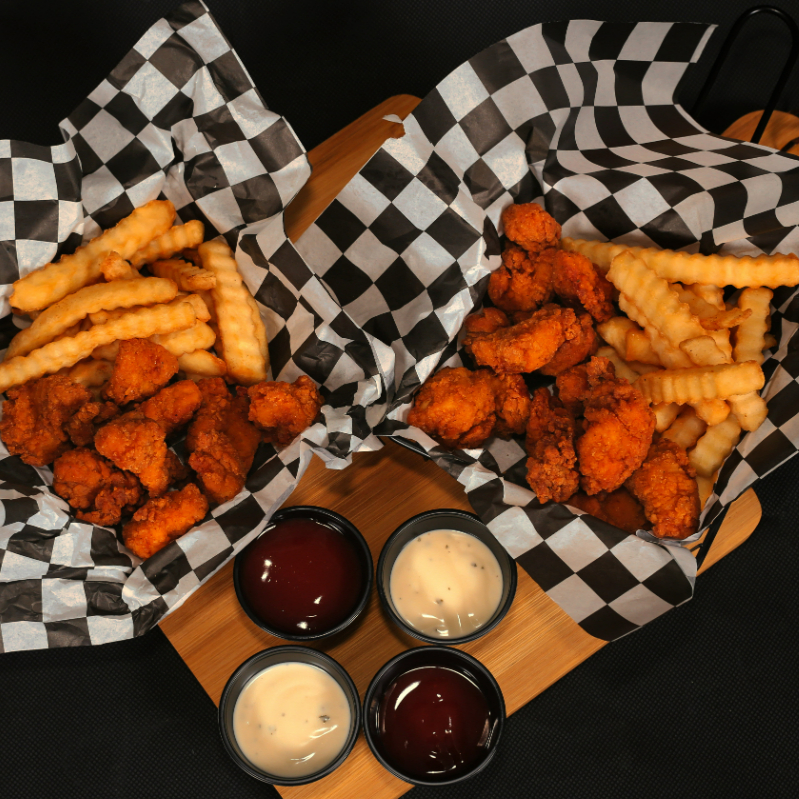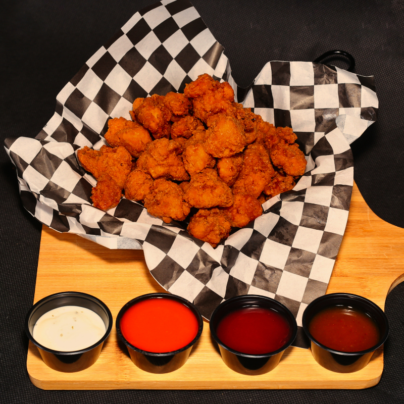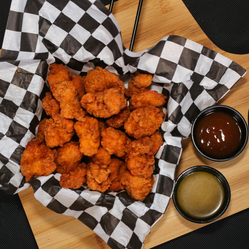 500 g de boneless crujientes y jugosos, recién preparados y bañados en tus salsas favoritas. Incluye 2 salsas a elegir para que combines.