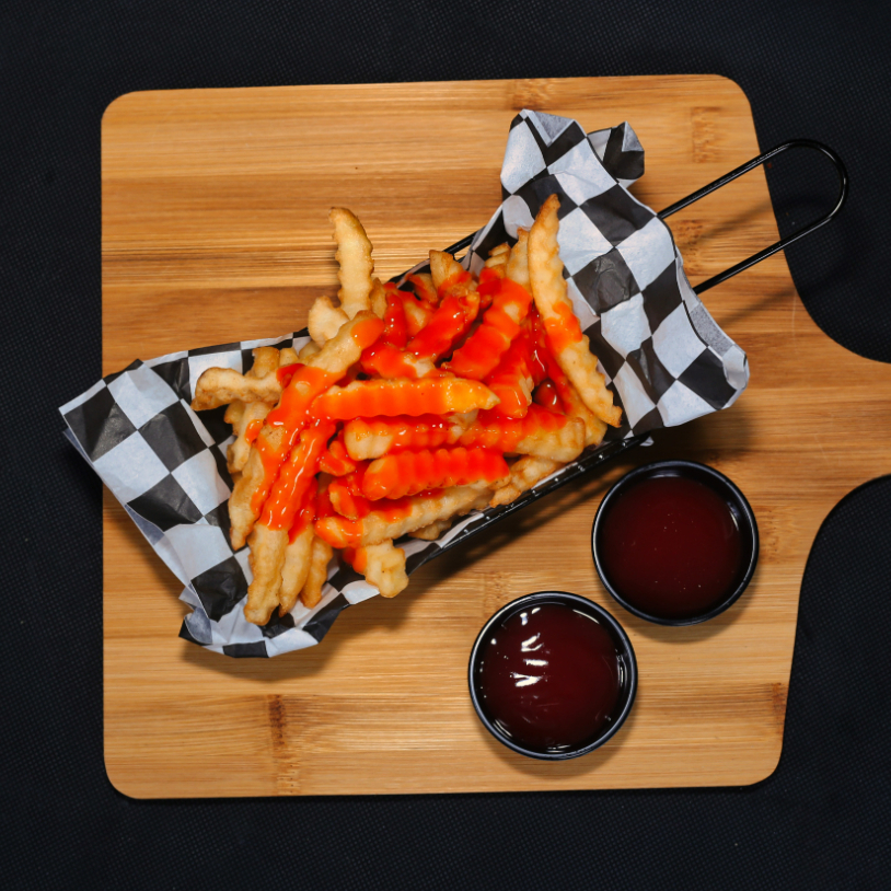 200 g de crujientes papas fritas recién preparadas, bañadas con la salsa de tu elección. Doradas al punto perfecto y servidas calientes, cada bocado combina la textura crujiente de las papas con el sabor intenso de tu salsa favorita.