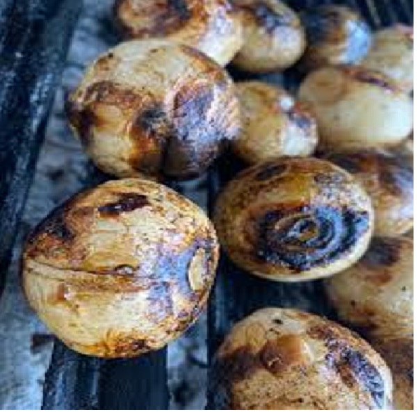 Cebollitas cambray asadas al carbón con un toque de sal y limón.