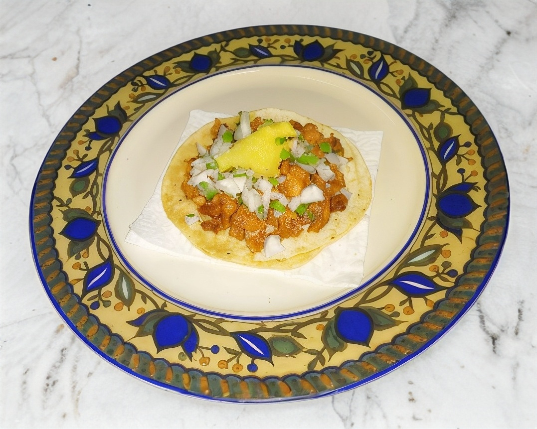 Deliciosa carne sazonada con queso, cebolla caramelizada, y piña