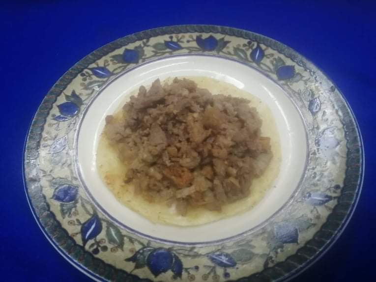 Deliciosa cebolla caramelizada, con trozos de carne sazonada