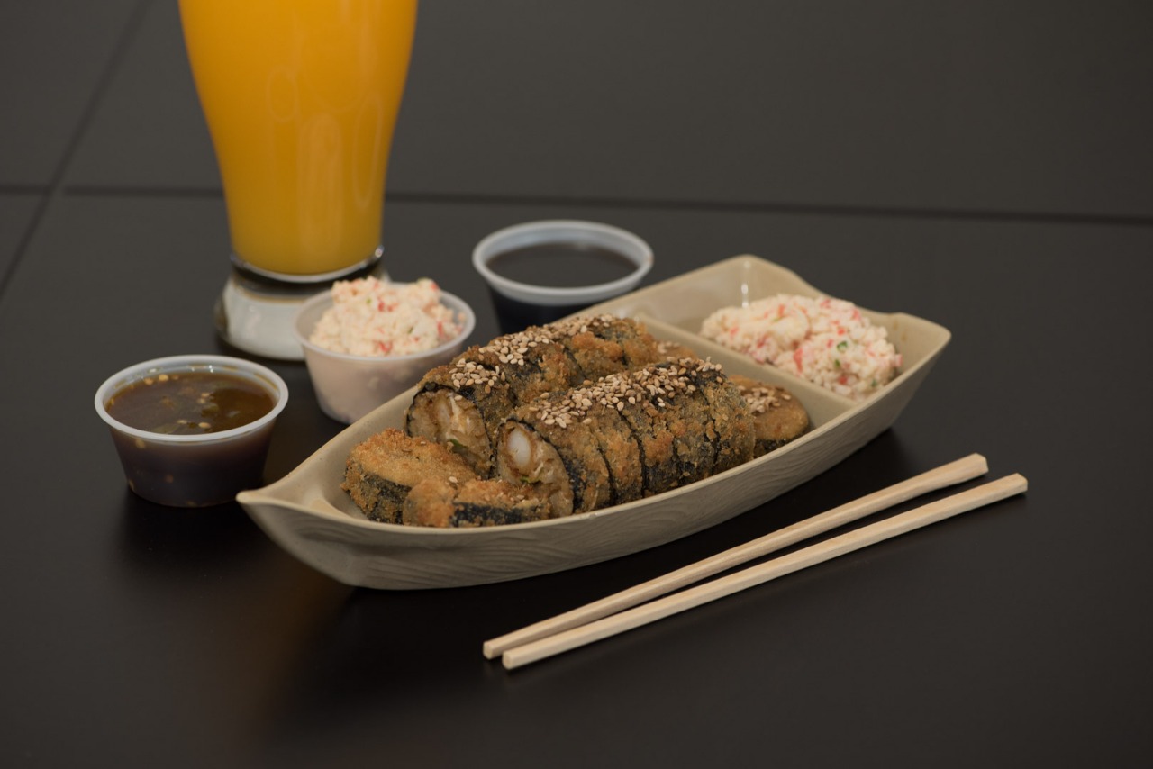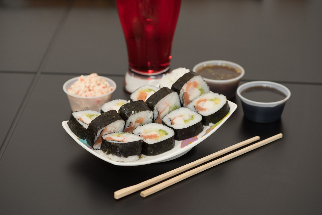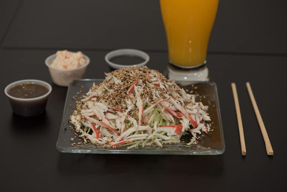 Medio rollo a escoger,media ensalada de surimi y medio arroz frito