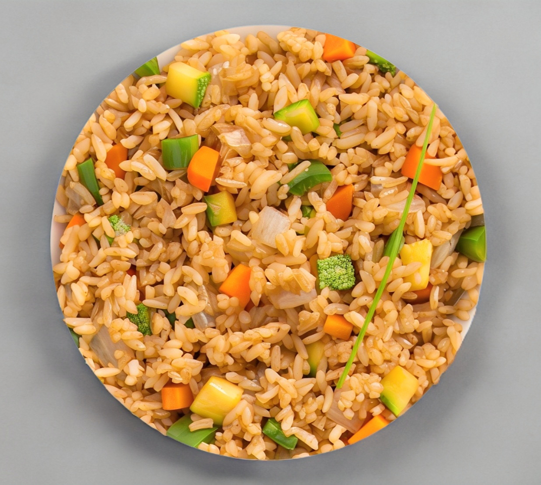 Arroz frito con calabaza, zanahoria,cebolla y pollo