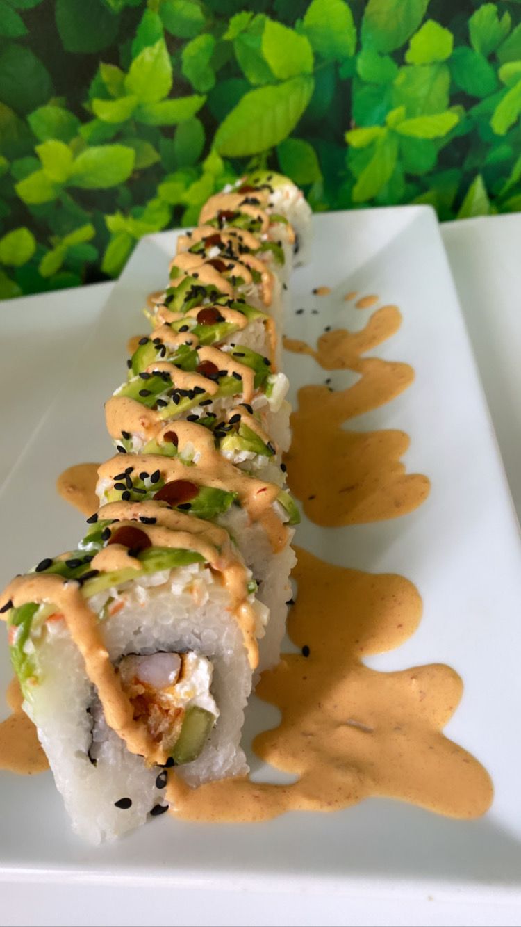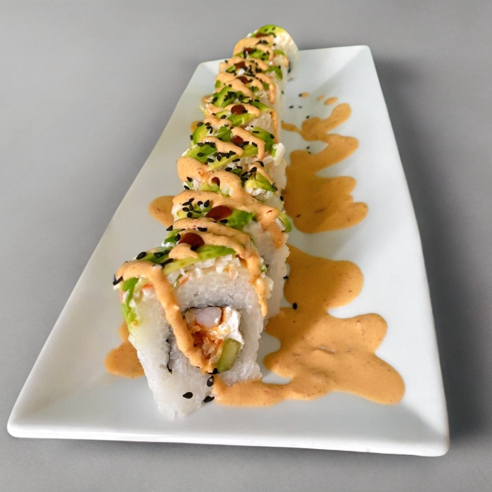 Por dentro Camaron Empanizado, Queso Crema y Pepino, Por fuera Tampico, Aguacate y Ajonjolí Mixto