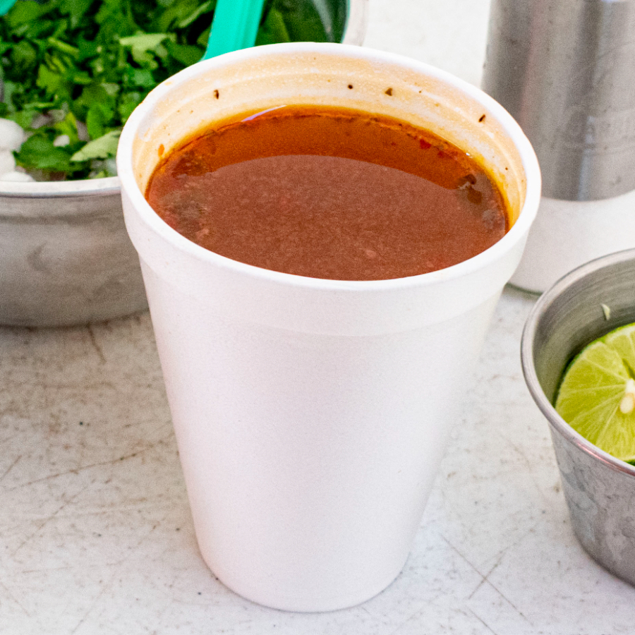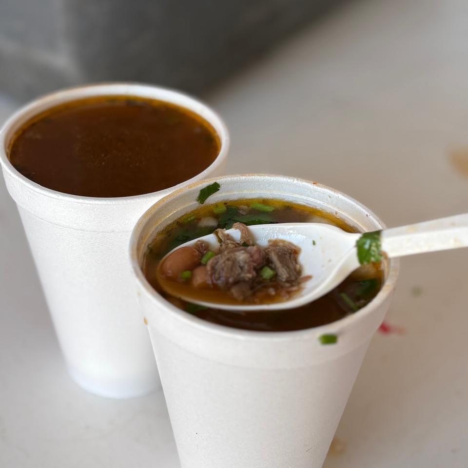 Birria (consome en litro y su porción de barbacoa )