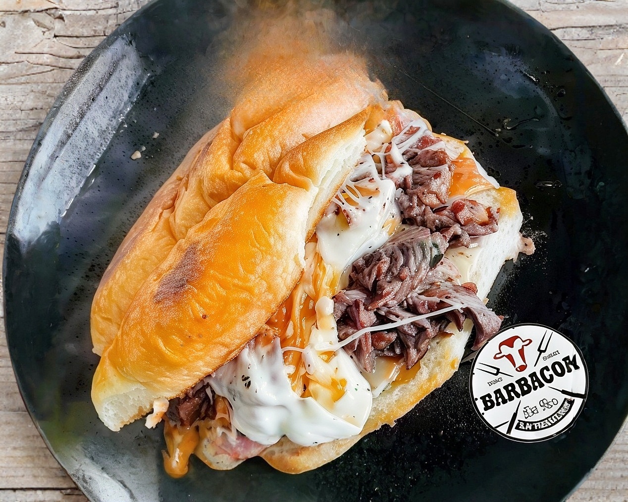 RatiLonches (barbacoa a la plancha con queso gratinado en un pan frances)