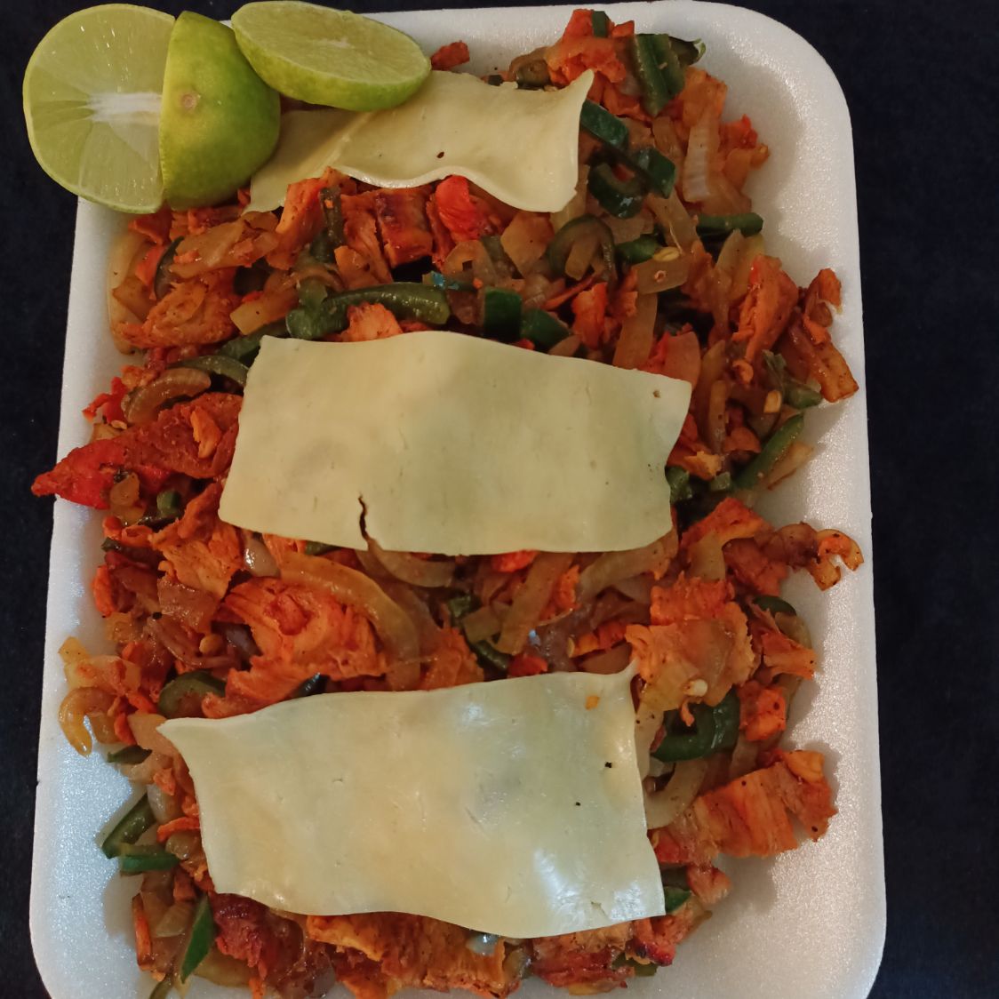 Carne del trompo, guisada con poblano, cebolla y queso, incluye 10 tortillas.