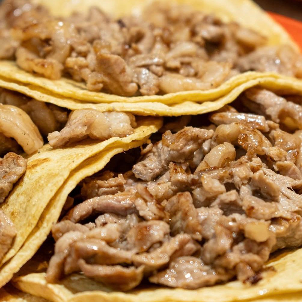 Deliciosa y suave carne de buche de cerdo perfectamente picada y servida en tortillas calientitas. ¡Un clásico irresistible!