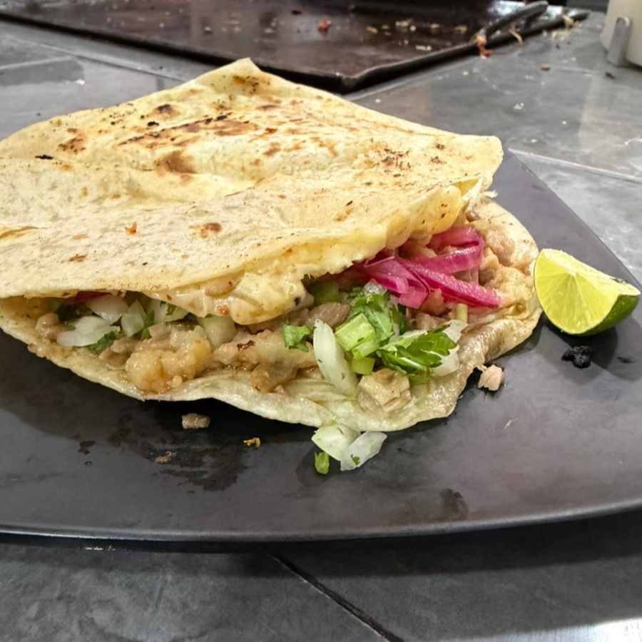 Dos deliciosas gringas preparadas con una combinación de bistec, pastor y adobada sobre tortillas de harina y queso fundido.