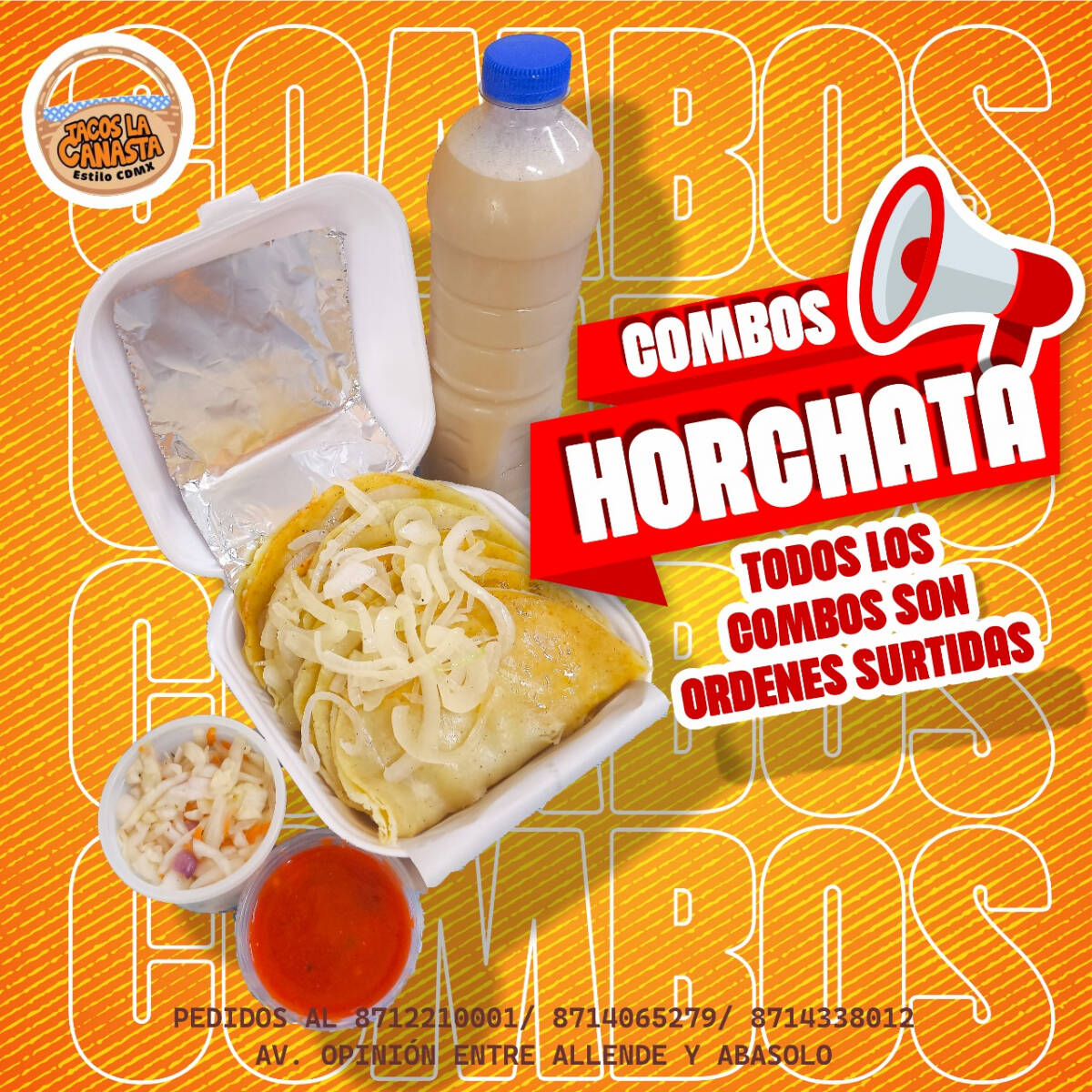 Tacos Surtidos 5 Pz + Agua 500ml de horchata