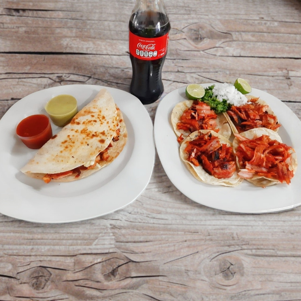 MEDIA GRINGA AL PASTOR Y UNA ORDEN DE TACOS AL PASTOR CON UN REFRESCO DE 400 ML