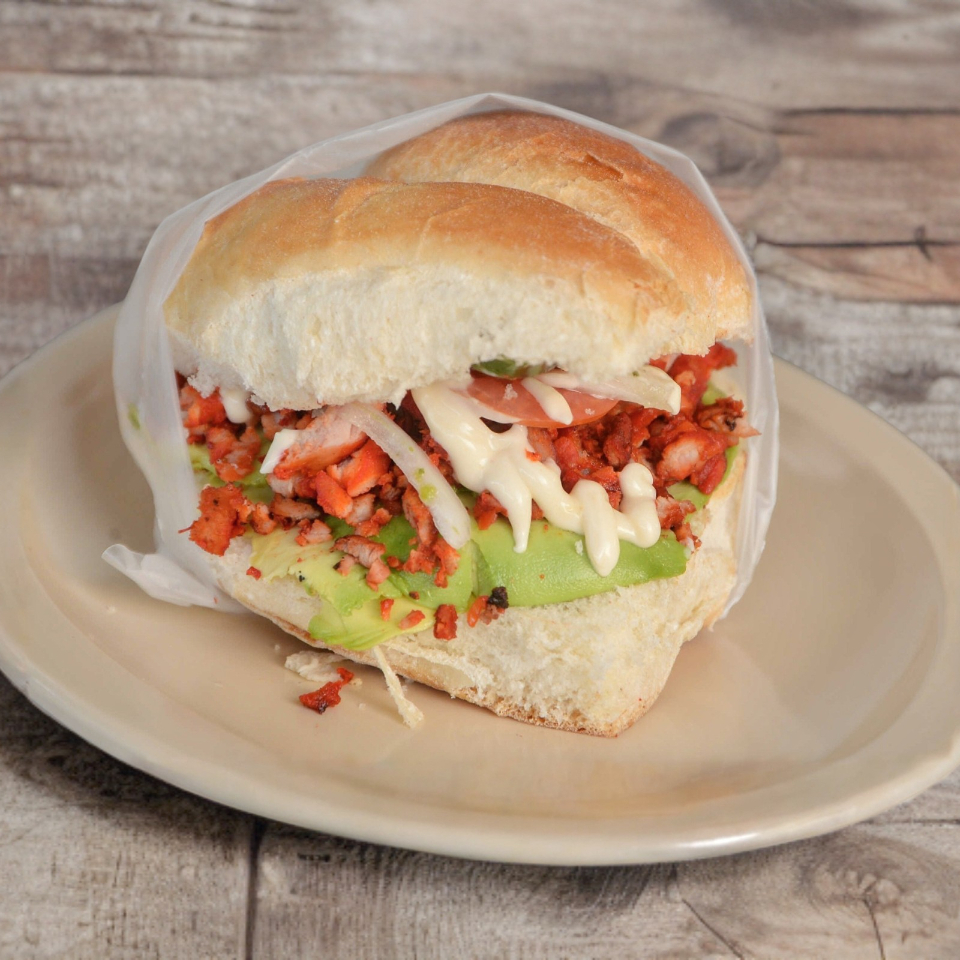 Selicioso Lonche que contiene: Carne al pastor 100gr, aderezos, Tomate, Cebolla y chile