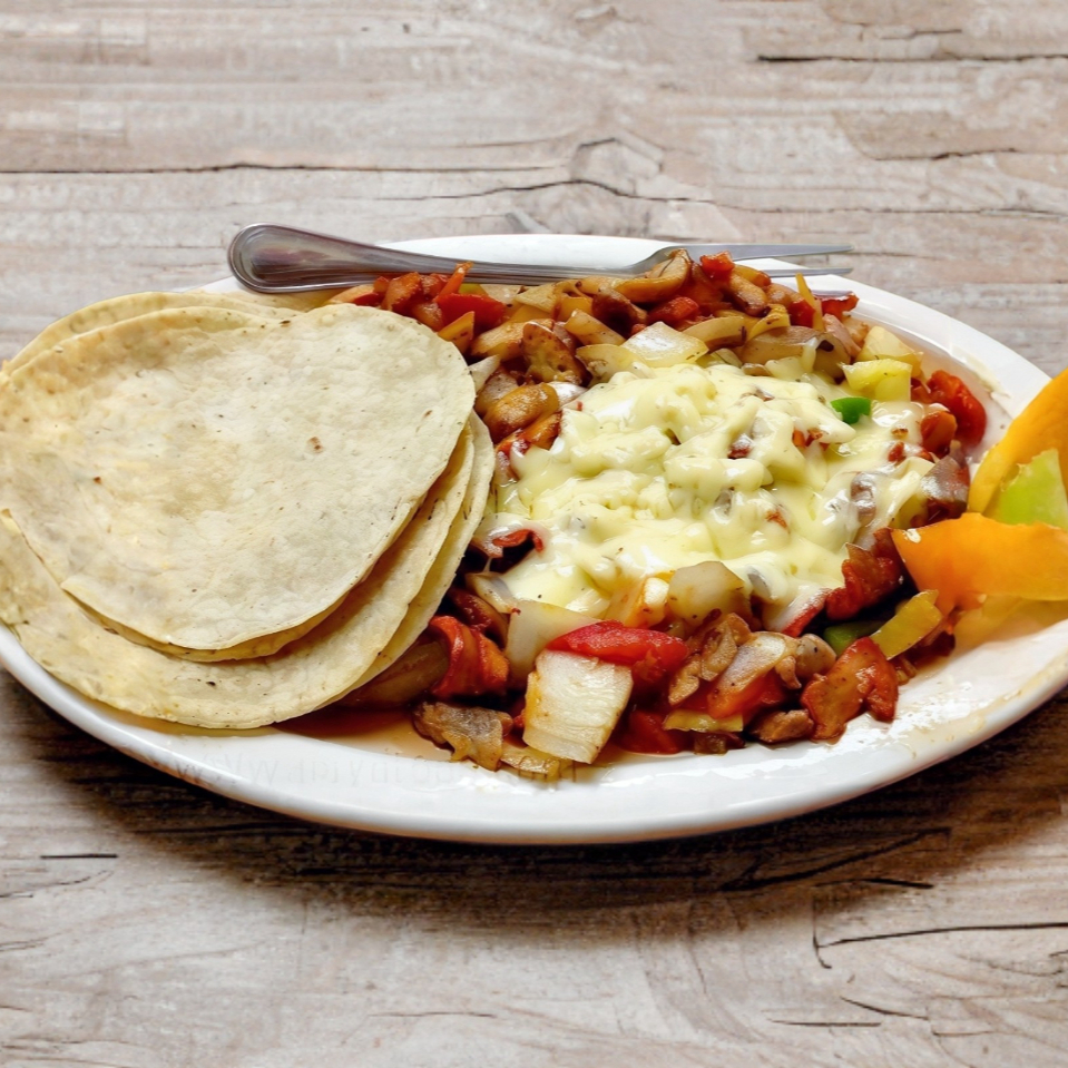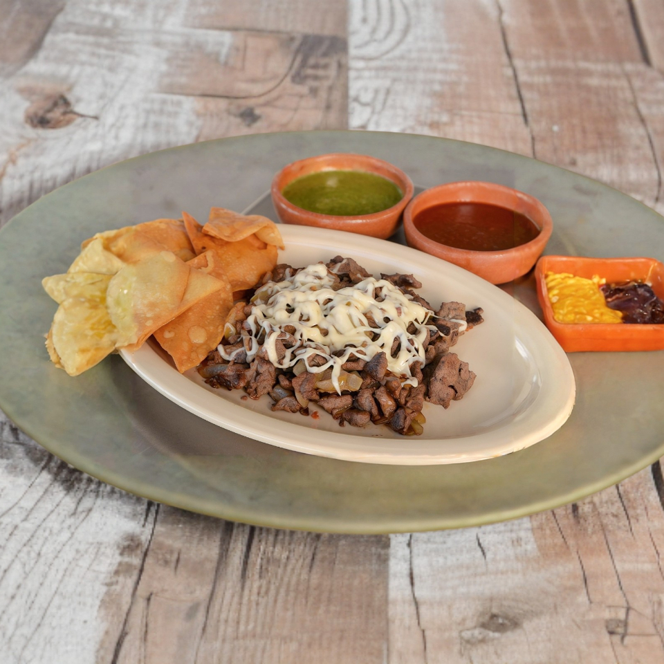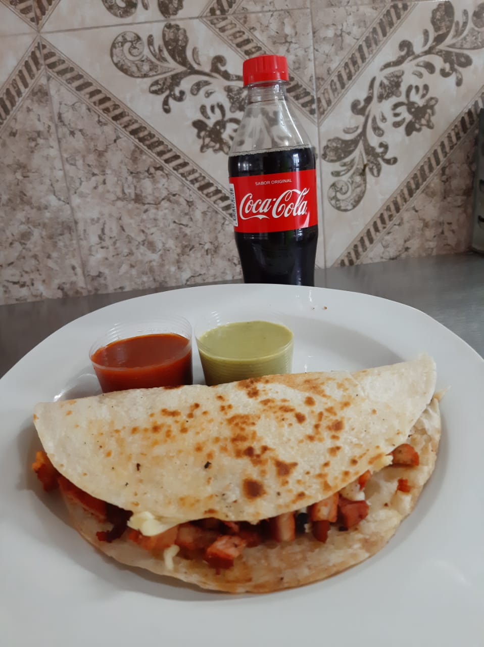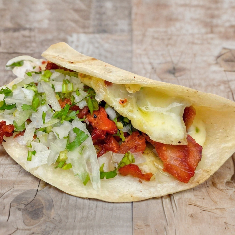 Carne al pastor, bistec, adobada, queso y un toque de salsa chipotle, doble tortilla de arina