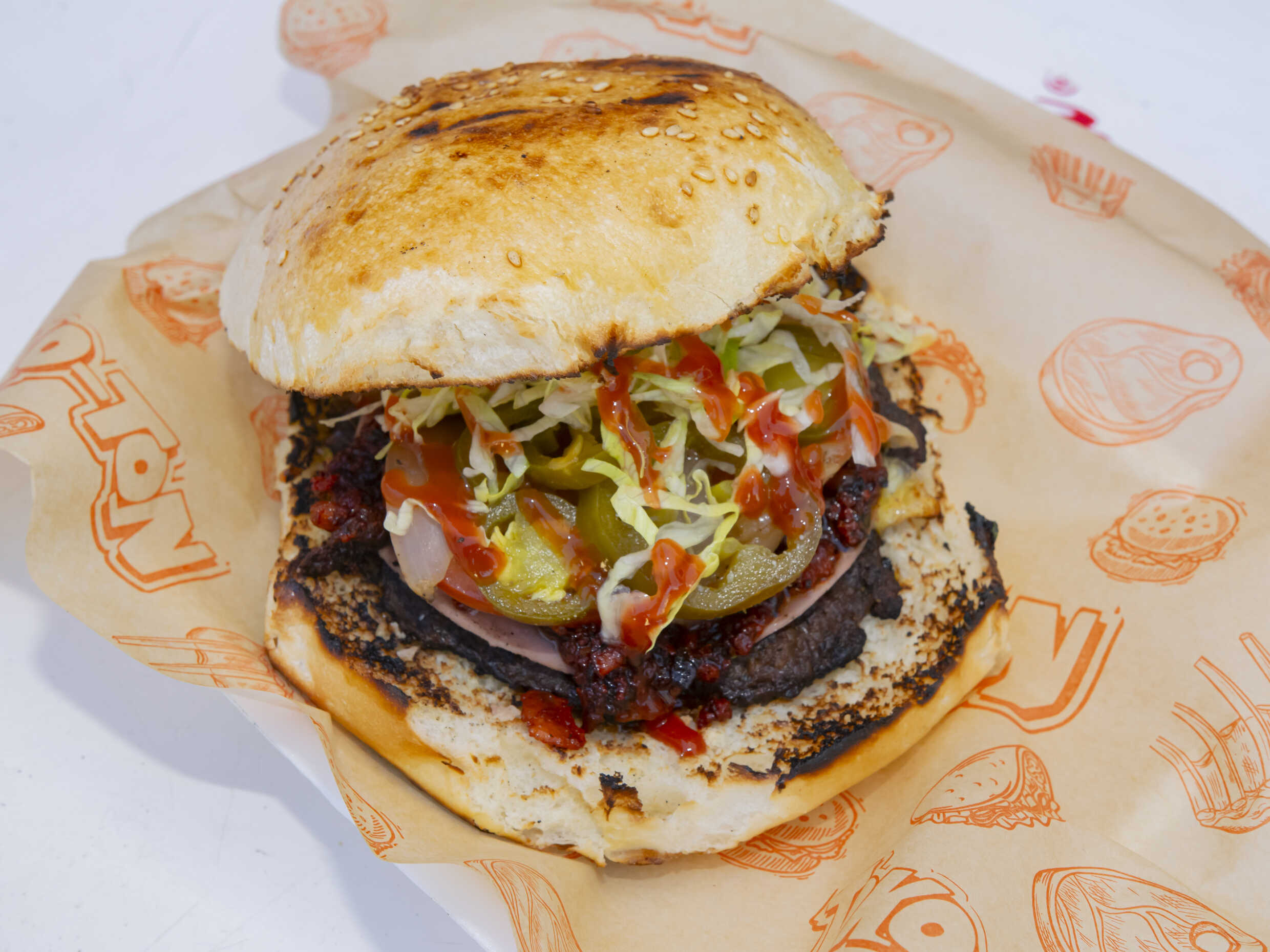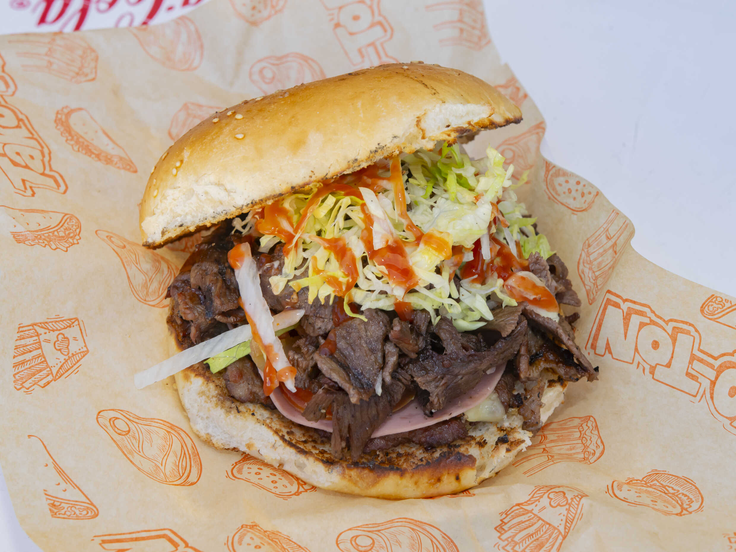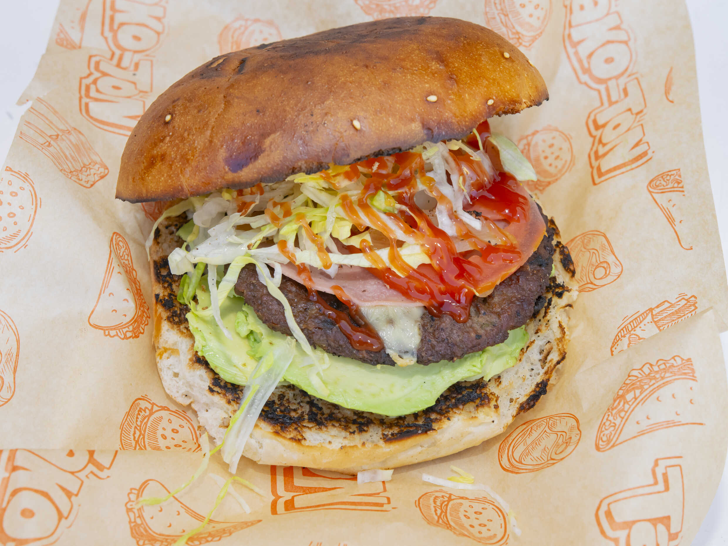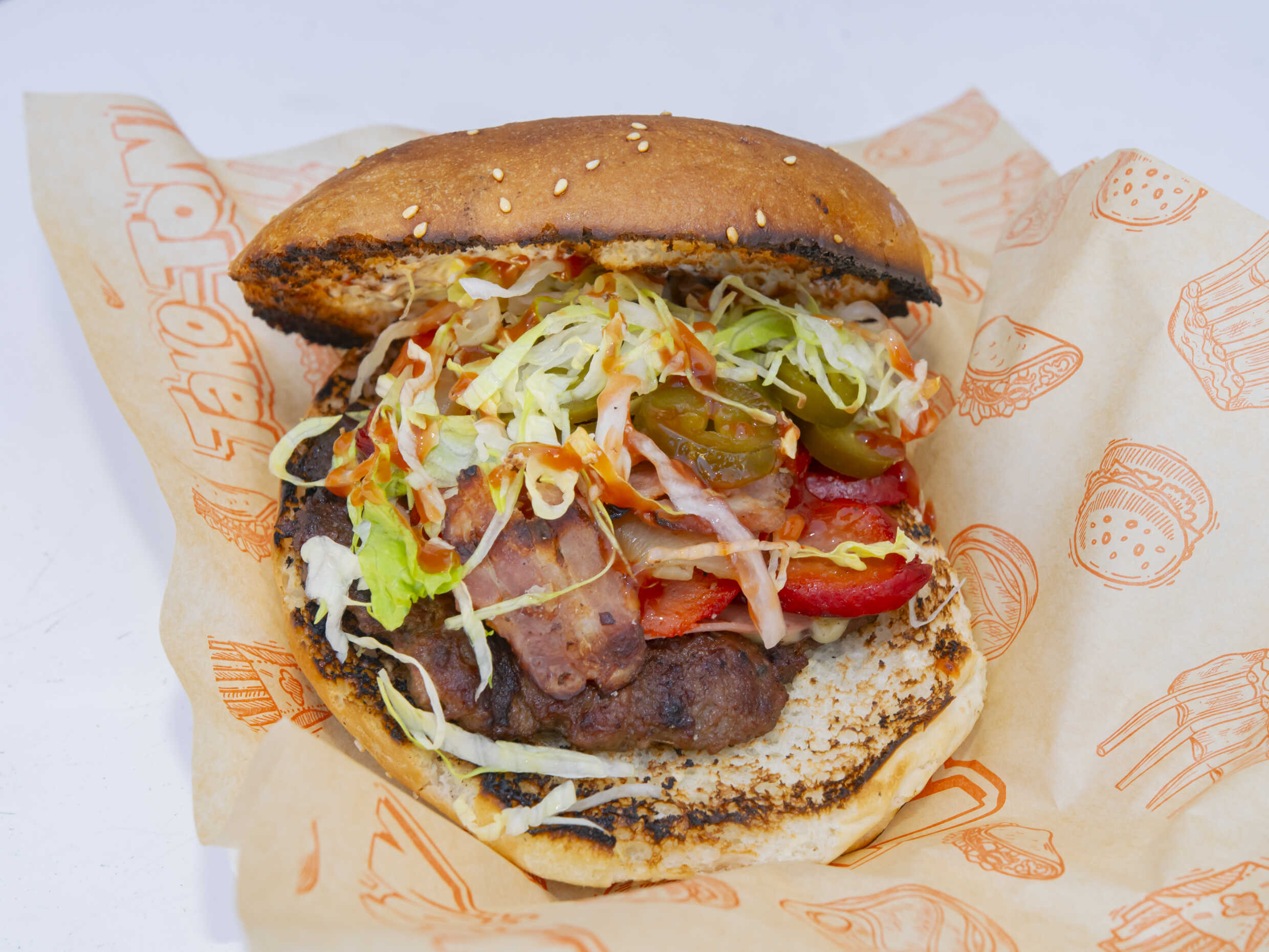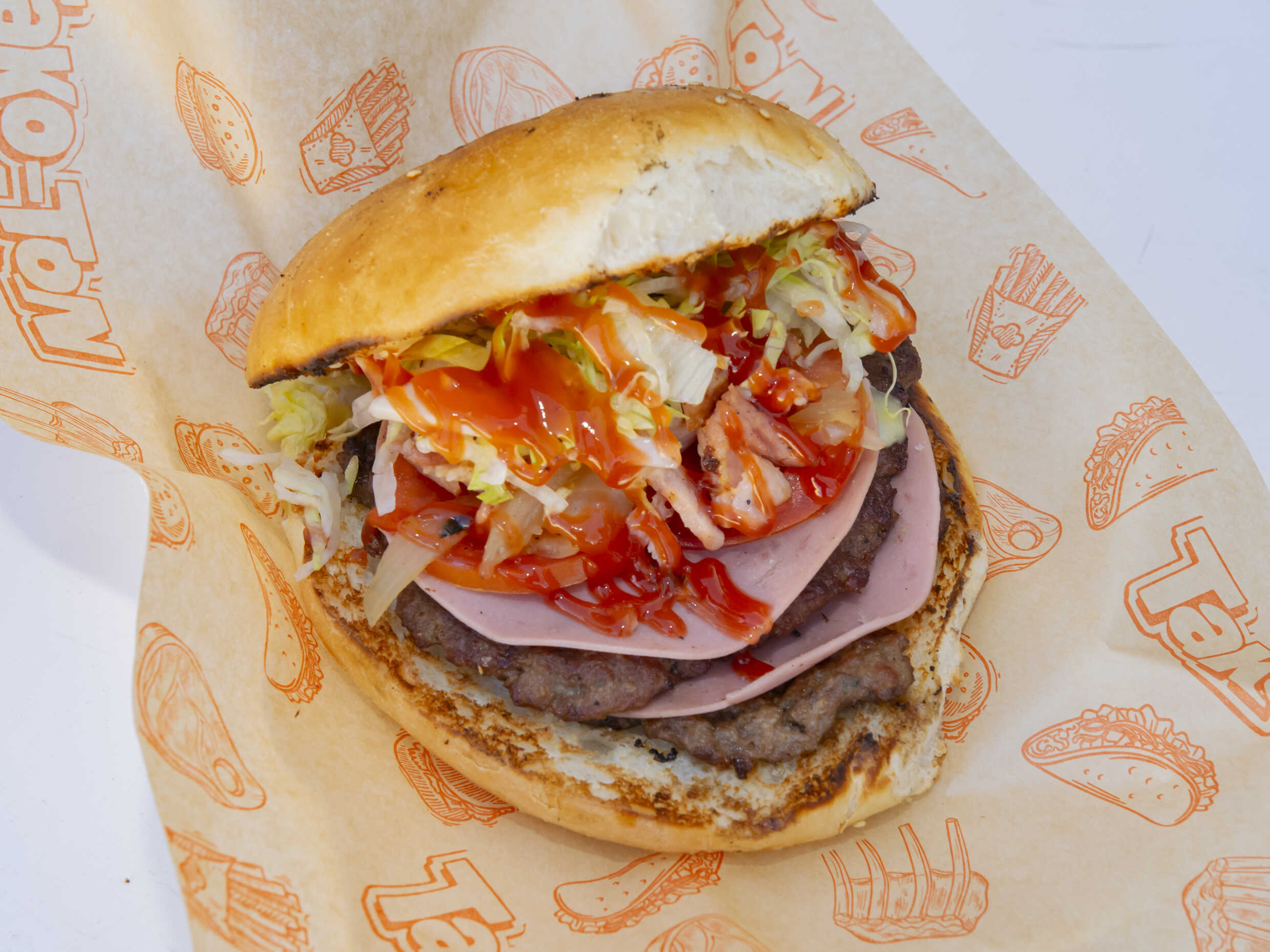 Doble carne, queso, jamón y tocino.