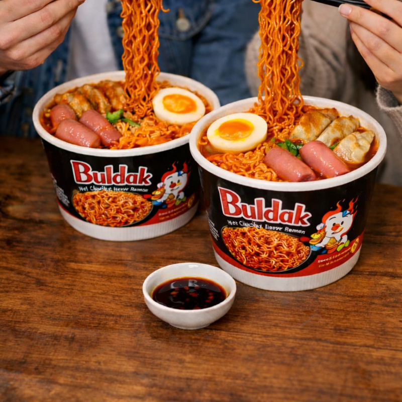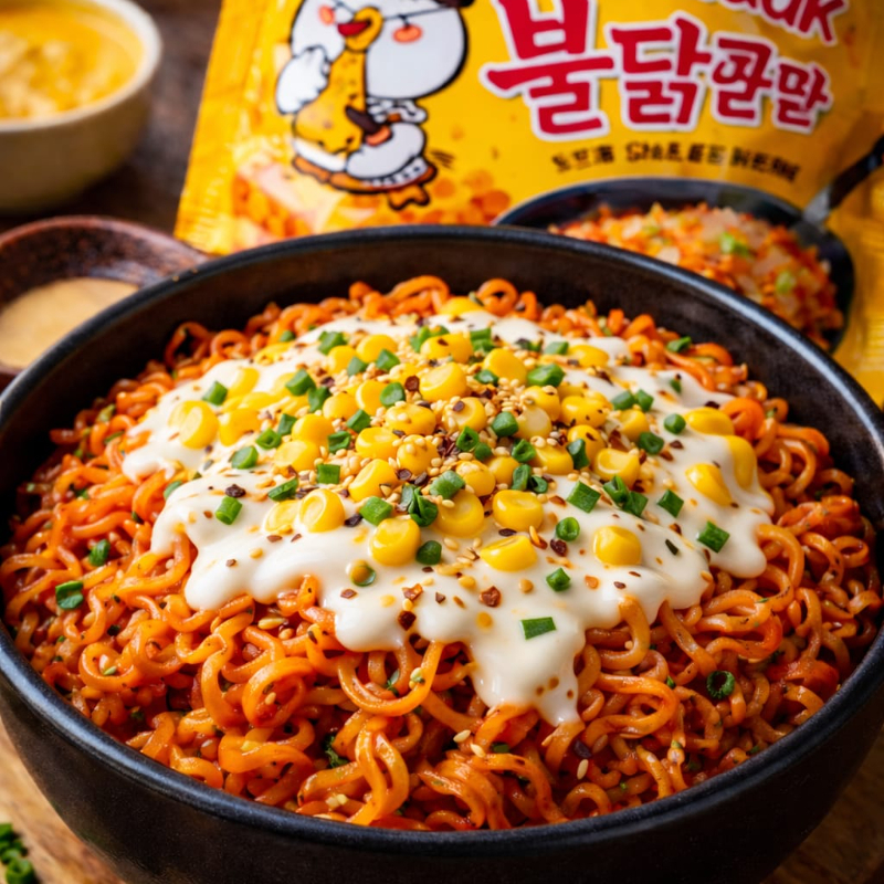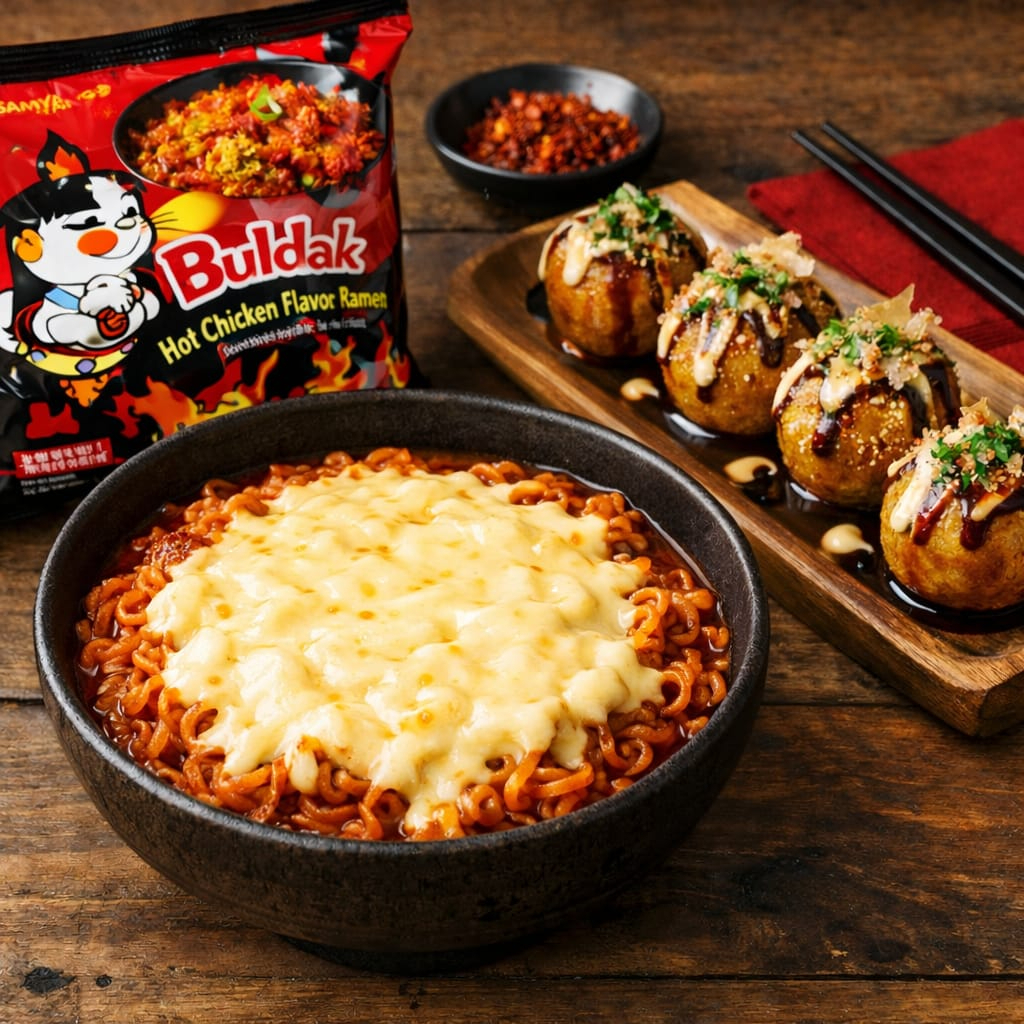7 Bolitas de Takoyakis de Camarón*1 + Buldak con Queso*1
