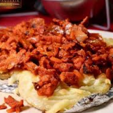 Papa asada con el inigualable sabor de la carne al pastor y queso fundido. ¡Sabor que envuelve!