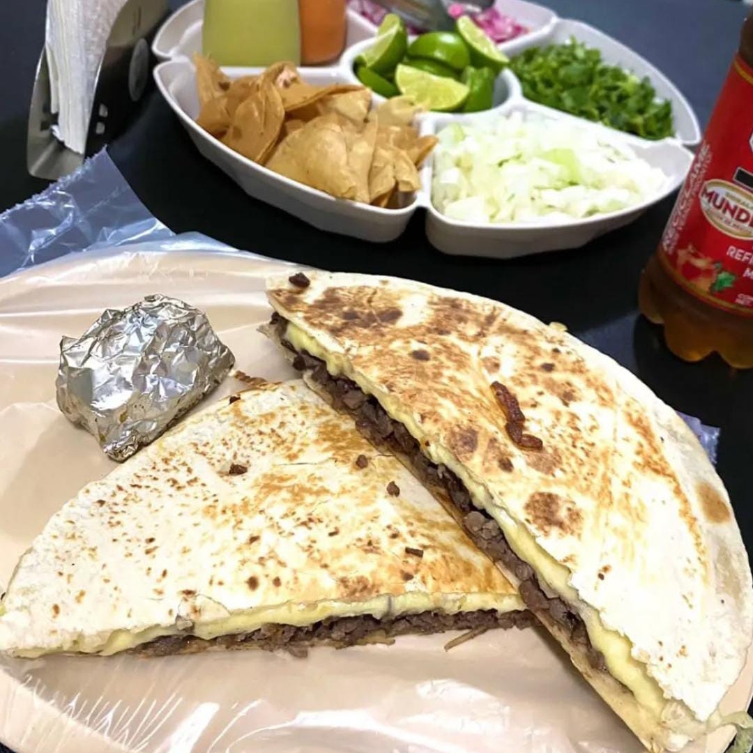 Tortilla de harina suave rellena de queso gratinado y la mejor carne asada. Sencillamente irresistible.