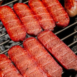 Salchicha a la parrilla, doradita y lista para complementar tus tacos o disfrutar sola.