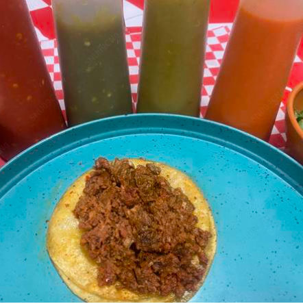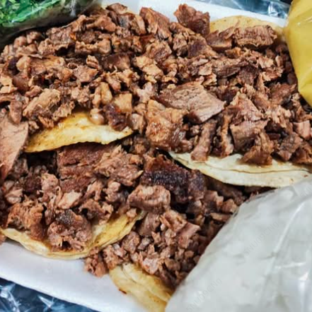 4 Tacos hechos con tortilla doble de maíz y arrachera de res.