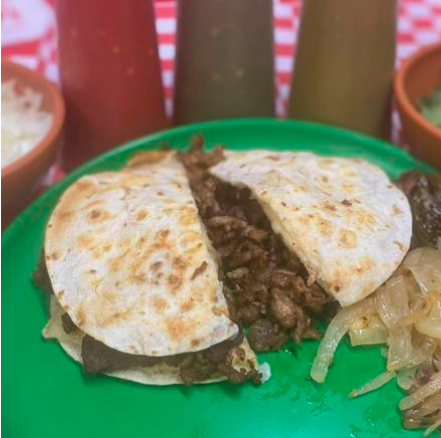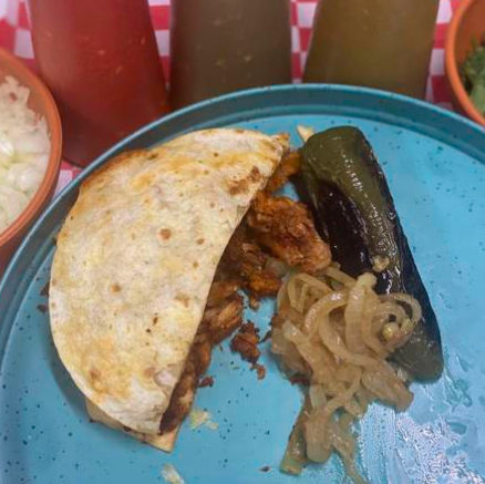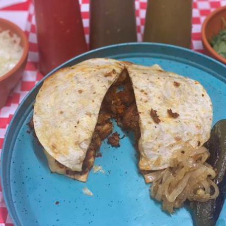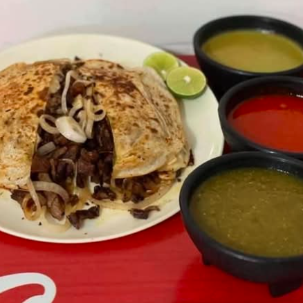 Tortilla de harina doblada a la mitad con queso y carne de tu elección.
