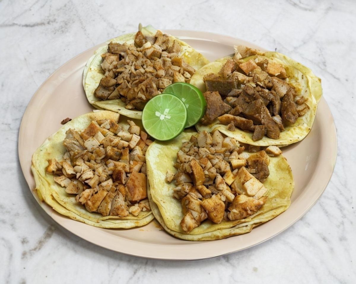 4 TACOS DE CARNE CUERITO, CON VERDURA Y SALSA