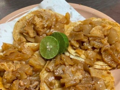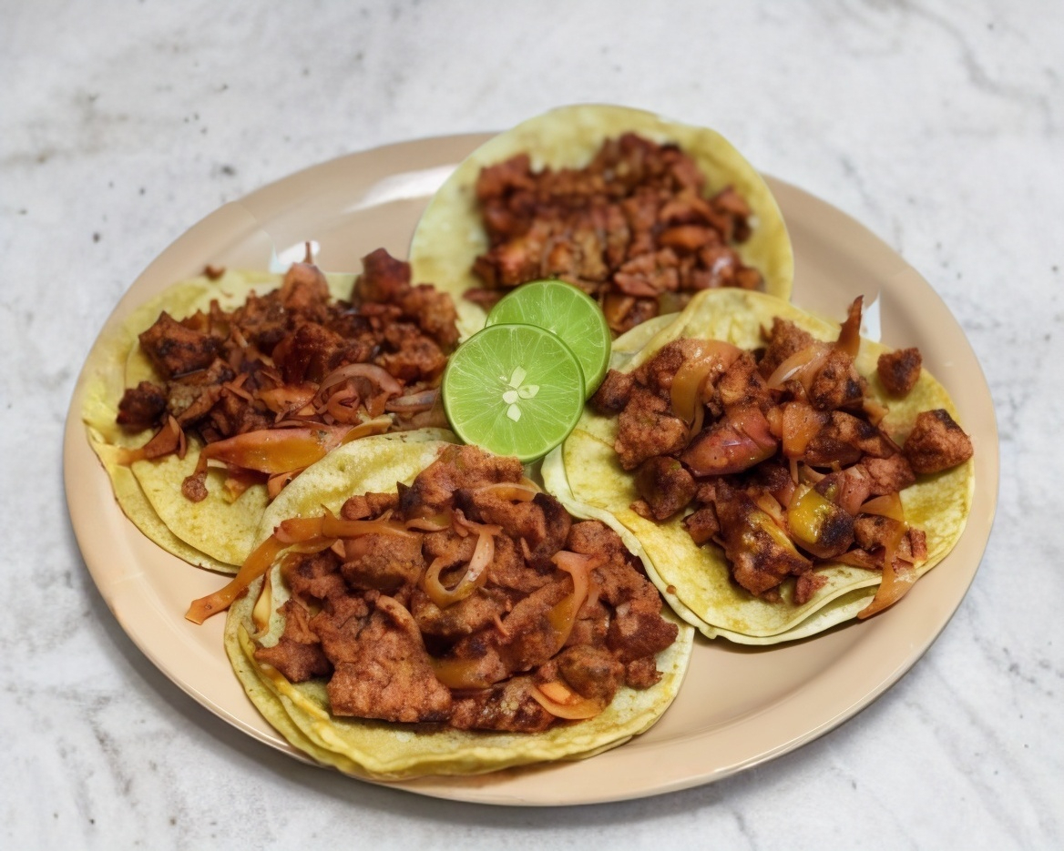 4 TACOS DE CARNE ADOBADA , CON VERDURA Y SALSA