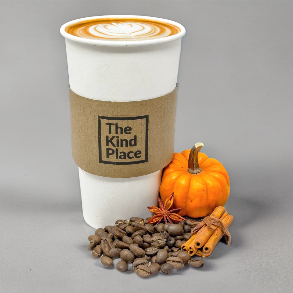 Espresso recién extraído mezclado con leche espumada con esencia de calabaza y especias.