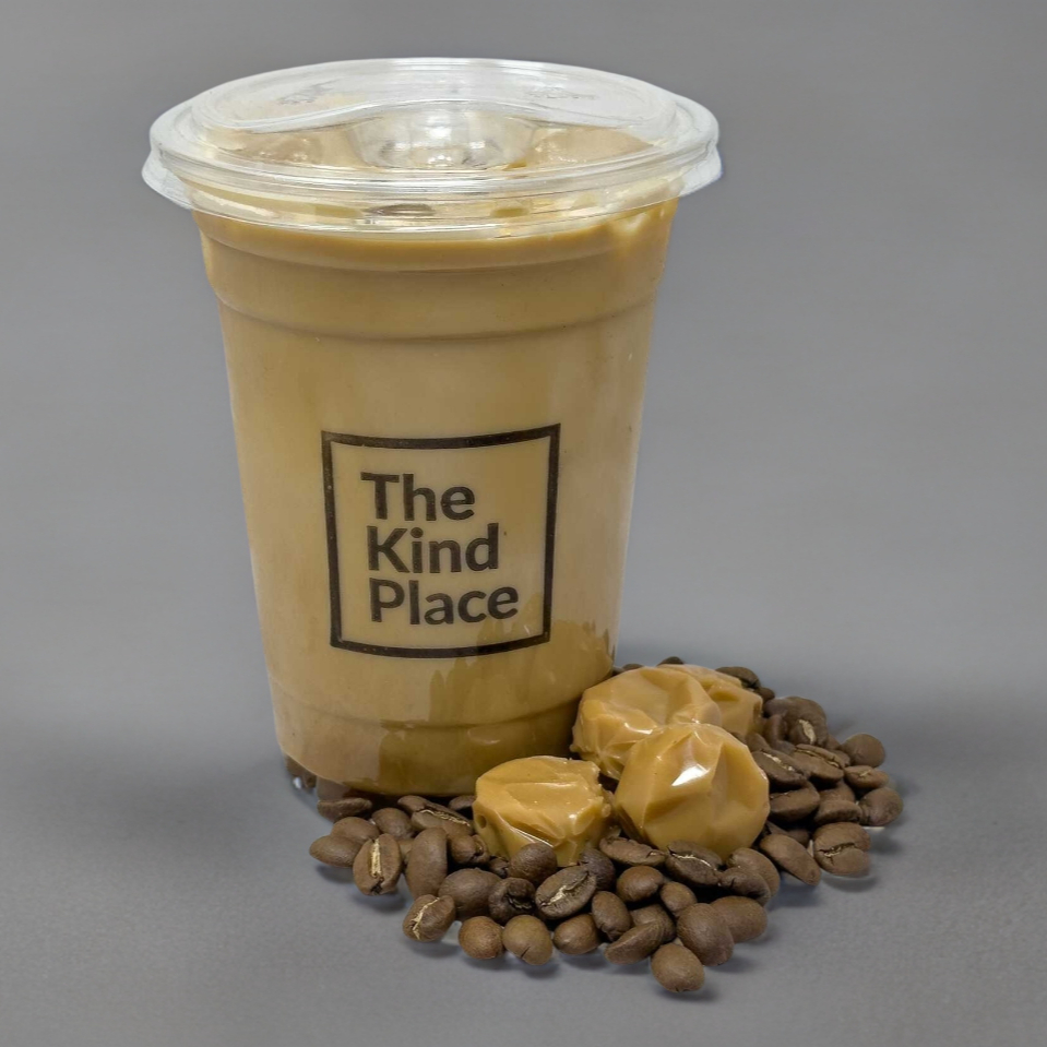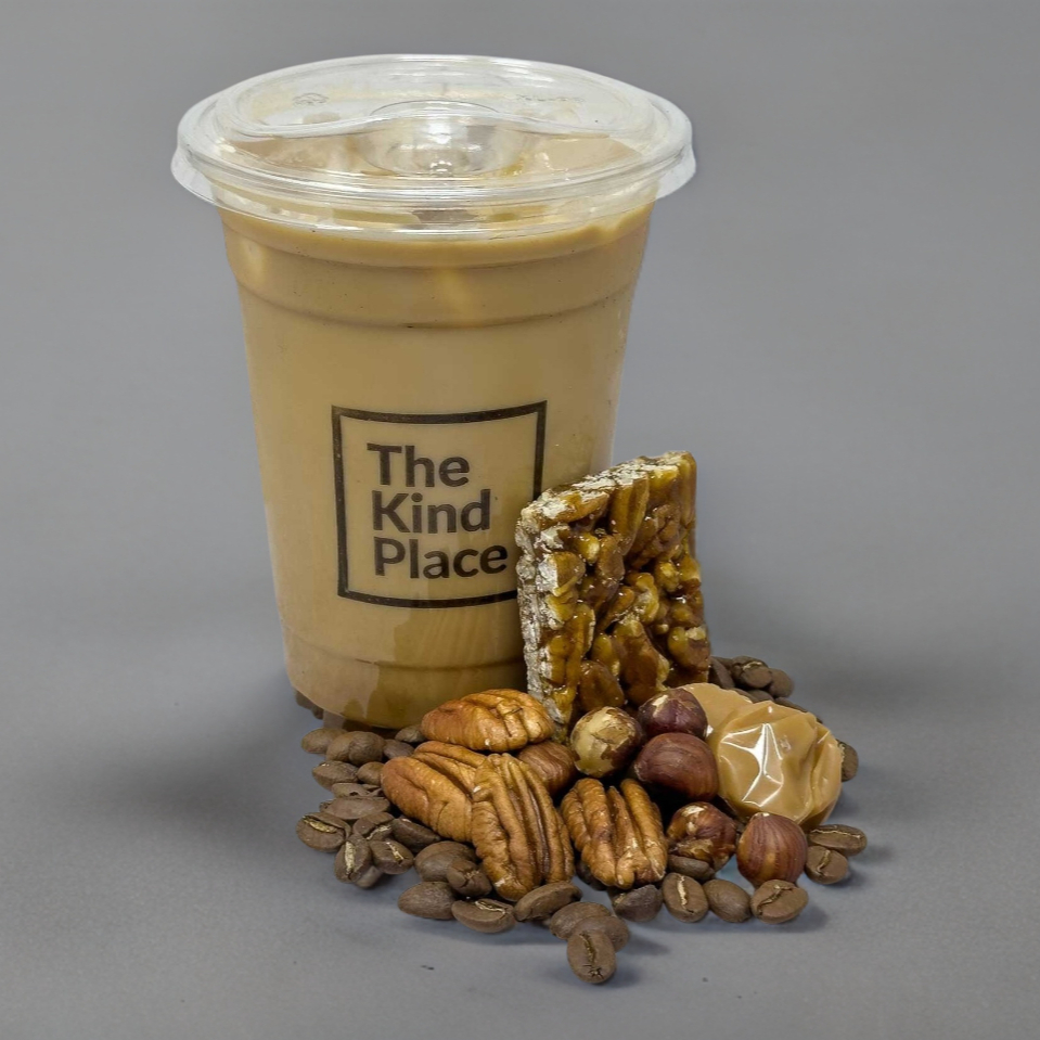 Espresso recién extraído mezclado con leche, hielo y esencia de Toffee Nut. (Caramelo de Nuez)