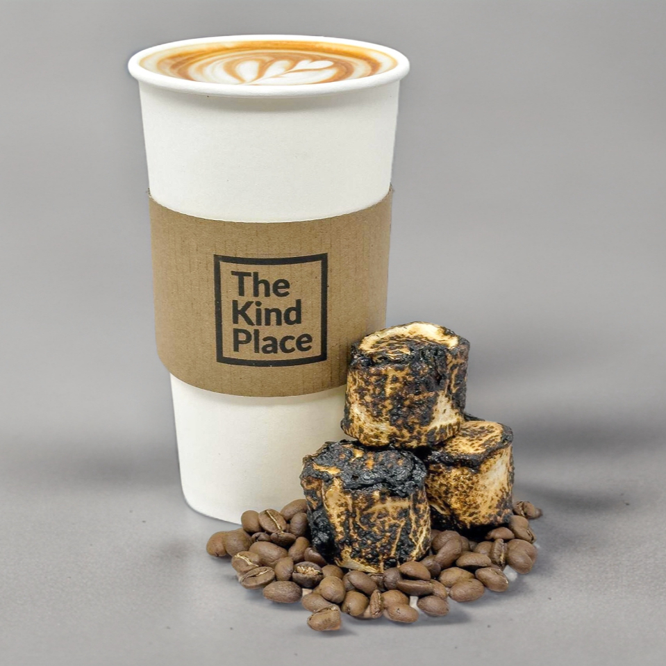 Espresso recién extraído mezclado con leche espumada con esencia de malvavisco tostado.