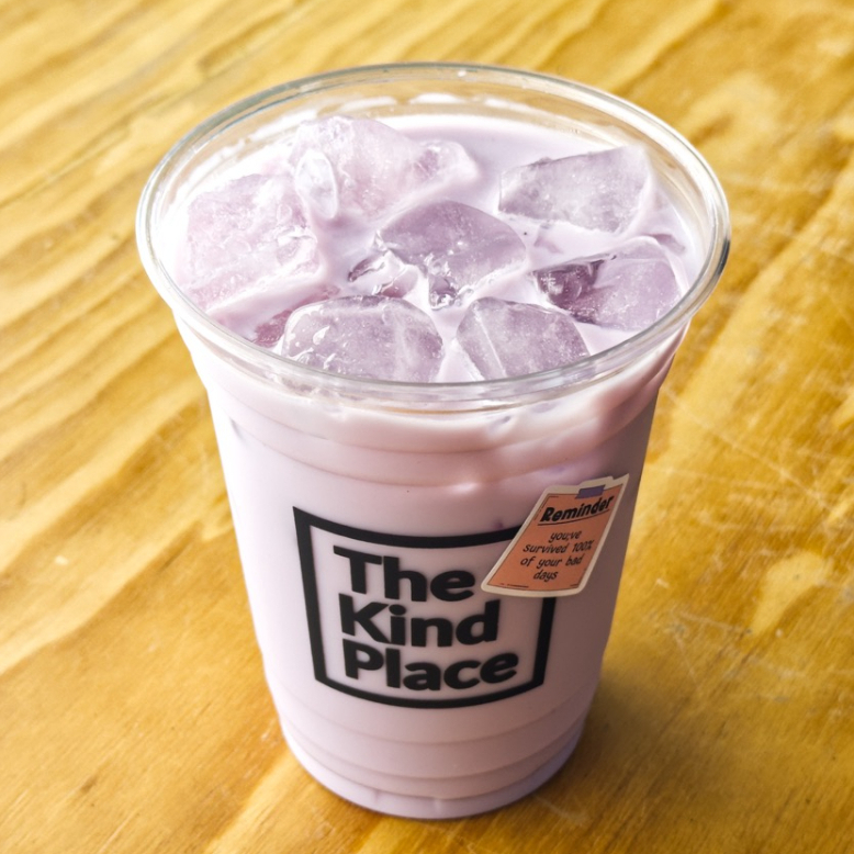 Espresso recién extraído mezclado con leche, hielo y esencia de malvavisco tostado.