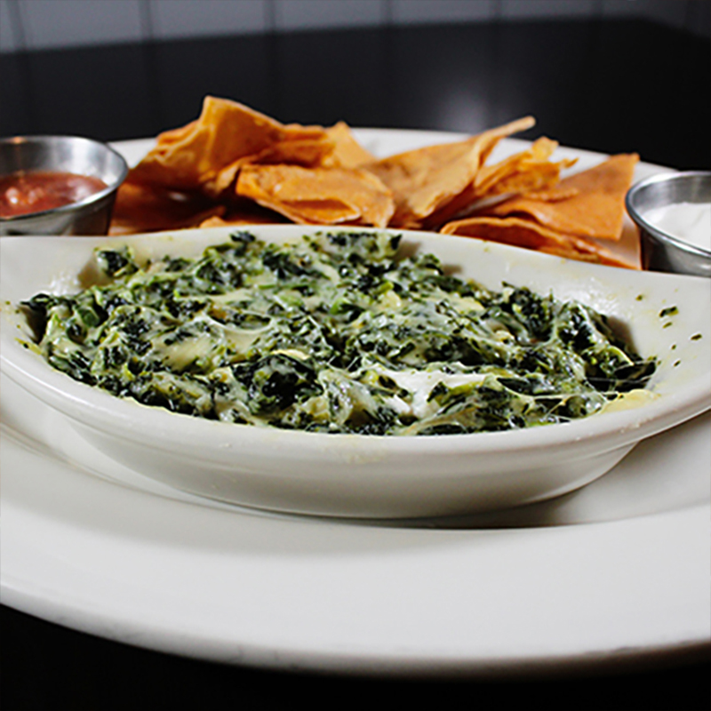Exquisita mezcla de espinaca, corazones de alcachofas y quesos italianos (180gr). Servido con topopos