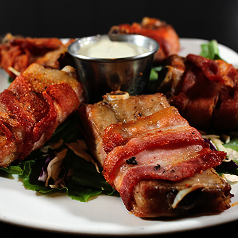 Costillas ahumadas envueltas en tocino dulce y crujiente (5pz)