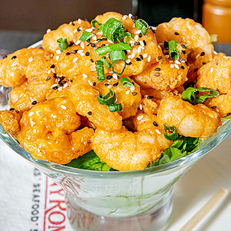 Camarones (250gr) fritos, salteados en salsa Kickin