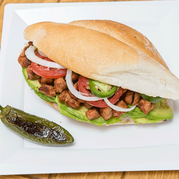 pan frances, adobada-chorizo, jamon, queso, aguacate, repollo, tomate, cebolla, aderezos